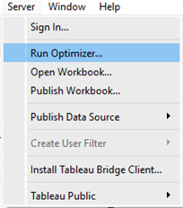 If you’re using Tableau 2022.1 or newer, you have a built-in performance booster at your fingertips. You can launch it from the Server menu by selecting Run Optimizer in Tableau Desktop, or within the publishing options when uploading to Tableau Cloud or Server.